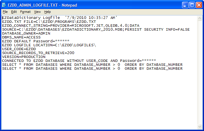 When the EZDD_Admin module is run, a logfile is produced documenting what happens in the application as a result of the actions taken. By default this logfile is named EZDD_ADMIN_LOGFILE.TXT and is located in the Logfiles subdirectory at the installed location. If any problem is experienced with the module this logfile can be used to help diagnose the situation. If ICC help is needed with the diagnosis, this logfile will be critical information requested. Here is a brief sample of the logfile.